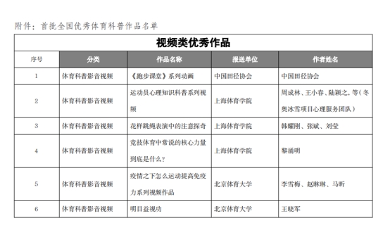 新葡萄两项科普视频入选首批全国优秀体育科普作品名单