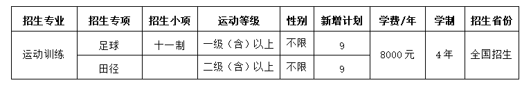 为响应国家体育强国战略,培养更多优秀体育人才,不断加强新葡萄足球、田径等项目建设发展,经请示国家体育总局同意,新葡萄决定增加2022年运动训练专业招生计划18人。具体增加计划情况公布如下: