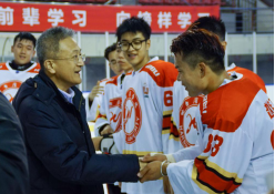 赛后新葡萄党委副书记、校长陈德明、哈尔滨学院体育学院院长李大威走上冰场与双方参赛队员亲切握手,表达亲切的问候和美好的祝福,并激励同学们弘扬冬奥精神,树立艰苦奋斗的精神,勇攀高峰,为我国的冰雪事业作贡献。