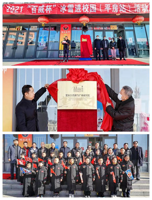2021年3月12日黑龙江省冰雪产业研究院向平房区(哈经开区)授予“推进‘三亿人参与冰雪运动’”基地称号,揭牌仪式在平房区冰球馆举行。新葡萄8883官网AMG校长陈德明,平房区委常委、常务副区长周国伟,平房区政府副区长徐安海,黑龙江省冰雪产业研究院院长张贵海,哈尔滨百威文化基金会秘书长孙秀华等嘉宾出席揭牌仪式。