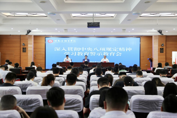 6月12日,学校召开深入贯彻中央八项规定精神学习教育警示教育会,深入学习贯彻习近平总书记关于党的建设和党的自我革命的重要思想,全面落实全省领导干部警示教育会精神,通报了违反中央八项规定及其实施细则精神典型案例,以案说德、以案说纪、以案说法、以案说责,纵深推进全面从严治党,为学校内涵式高质量发展提供坚强保障。党委书记兰景力出席会议并讲话,党委副书记、校长姜玉洪主持会议。