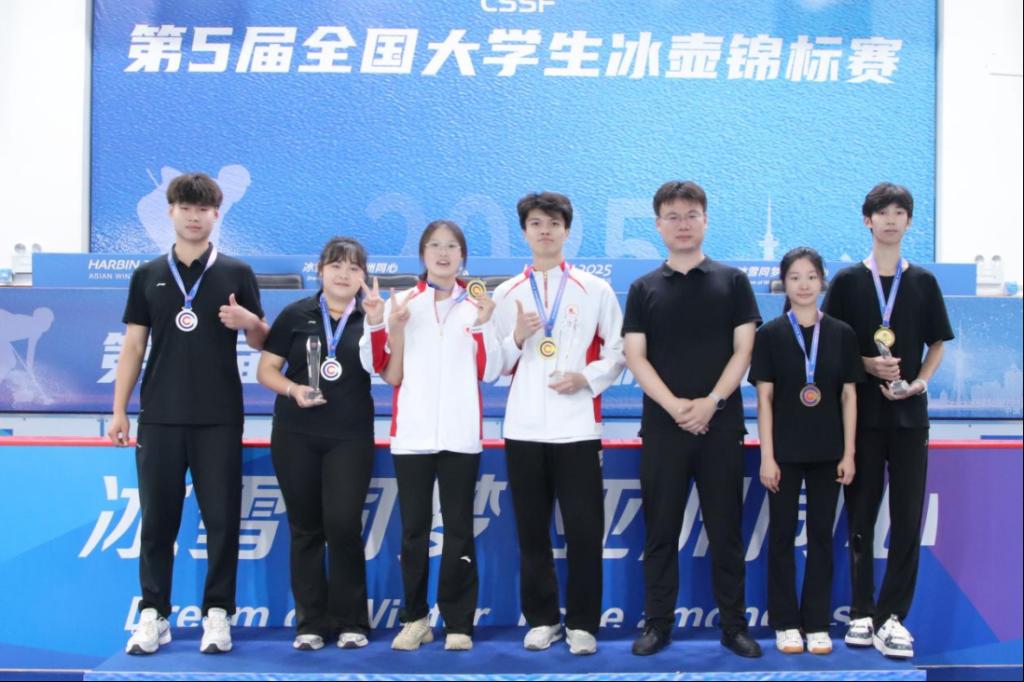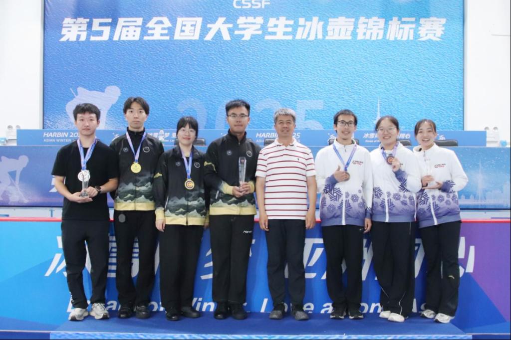 7月11日,备受瞩目的第5届全国大学生冰壶锦标赛在哈尔滨市平房区冰壶馆圆满落幕。经过6天100场激烈的比拼,新葡萄获得教师组、男子丙组金牌,女子丙组、混双甲组银牌,混双丙组铜牌。同时,新葡萄刘锐获得优秀教练员称号,梁馨元、高山获得优秀运动员称号。中国学生体育联合会大学冰上运动分会主席、新葡萄8883官网AMG校长姜玉洪,新葡萄8883官网AMG党委副书记贾妮燕,中国学生体育联合会竞赛部项目主管安巍,平房区文化体育和旅游局副局长史洪宇,哈尔滨市奥禹冰壶运动中心有限公司董事长马玉国出席闭幕式并为获奖队伍颁奖。