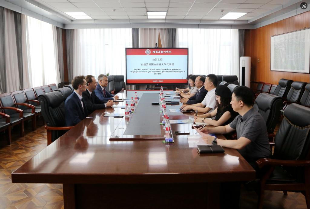 姜玉洪代表学校对代表团表示热烈欢迎。他指出,今年5月白俄罗斯体育与旅游部部长来访为两校合作奠定了良好基础,希望以此次访问为契机,重点在三个方面深化合作:一是推进师生互访交流,二是加强冰雪运动科研合作,三是共建体育人才培养平台。