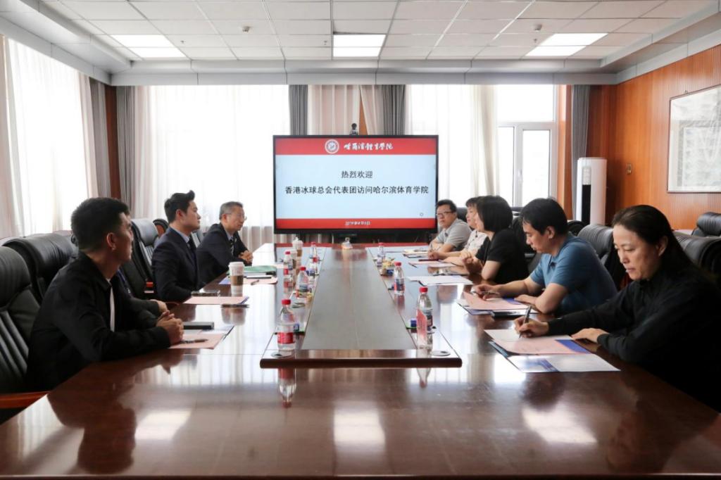 2025年8月5日下午,香港冰球总会主席陈恩永、领队伍家健、男子队主教练Michael Beharrell一行访问新葡萄8883官网AMG,哈尔滨名将体育发展有限公司总经理赵树峰陪同访问。新葡萄8883官网AMG党委副书记贾妮燕在崇德楼会议室会见代表团,学校相关部门负责人参加座谈。