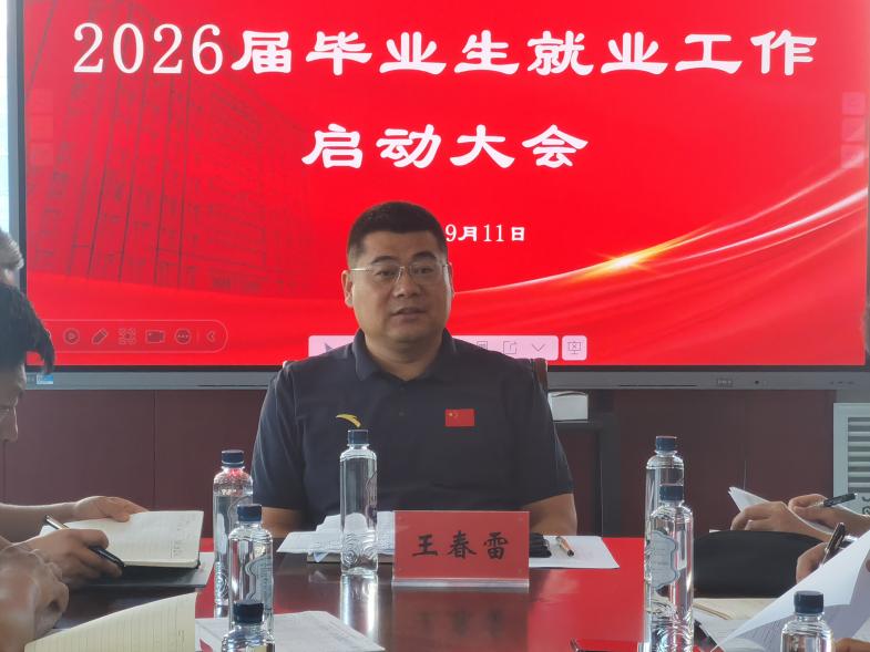 2025年9月11日上午,学校2026届毕业生就业工作启动会在崇德楼6楼会议室召开。校党委副书记王春雷出席会议并讲话。各二级学院、研究生院党总支书记、院长及招生就业处相关同志参会。会议由招生就业处处长刘景祥主持。