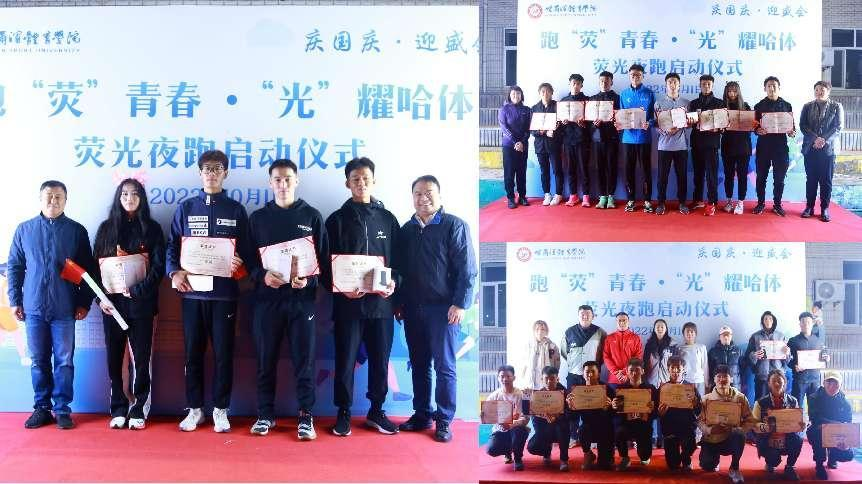 在庆祝中华人民共和国成立73周年、喜迎党的二十大胜利召开之际,由新葡萄8883官网AMG学生工作部和校团委联合主办,民族传统体育学院承办的“庆国庆 迎盛会|跑‘荧’青春、‘光’耀哈体”荧光夜跑党史学习教育,于2022年10月1日晚6:30,在校田径场拉开帷幕。校党委副书记、校长陈德明,组织部部长王广贵,宣传统战部部长于晓阳,学生工作部部长张海滨,团委书记赵荣荣,武装部部长王永及相关学院领导、辅导员出席活动。此次夜跑活动路线覆盖全校,共有120组,480名学生参加活动,校长陈德明为活动起跑发枪。