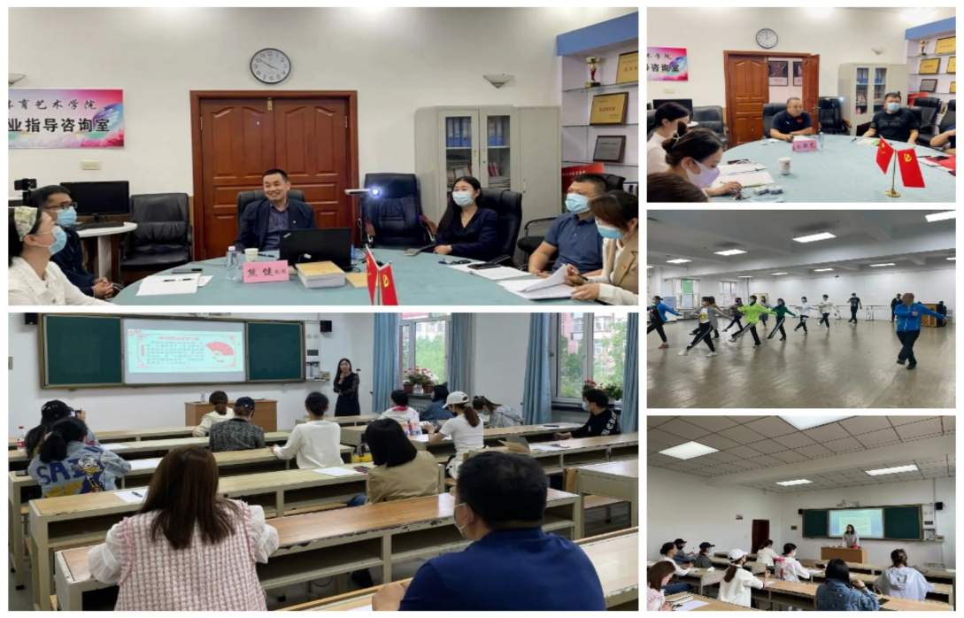 体育艺术学院教师党支部在校党委的正确领导下,建设“1+6+1”工作机制,建立党建与业务深度融合的育人体系,在党的二十大胜利召开之际,支部教师载歌载舞,倾情演绎了小合唱《没有共产党就没有新中国》等精彩节目,用歌声和舞姿表达心声,以昂扬的姿态展现出奋进新征程,建功新时代的良好精神风貌;以“五推五提”举措开展工作,用实际行动向党的二十大献礼。