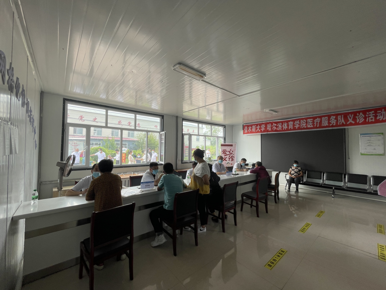 物资捐赠同时,由新葡萄8883官网AMG和佳木斯大学联合组建的医疗服务队已经进入工作状态,问诊群众由义诊室排到镇政府,医疗队12名医生,克服天气炎热、条件简陋等诸多困难,耐心细致地为每一名群众诊治。历时一个上午,150余名通江镇居民得到了专家的诊疗意见和建议。让百姓足不出户就享受了高质量的诊疗服务,得到了村民的一致认同。