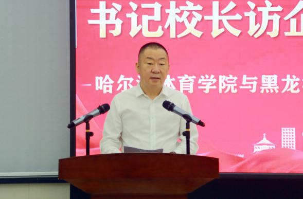为积极落实书记校长访企拓岗促就业专项行动,促进高校与文化企业的共同发展,实现校企资源共享,使学生专业理论与社会实践相结合,促进学生高质量就业,2022年7月7日11:00时,在新葡萄8883官网AMG滑冰馆贵宾厅与黑龙江省演艺集团责任有限公司举行书记校长访企拓岗专项系列行动。党委副书记、校长陈德明,纪委书记那贵玲,工会主席赵俊岭,黑龙江省演艺集团有限责任公司党委书记、董事长薛金升,党委副书记、总经理刘彤,纪委书记刘迎宾,副总经理孙启军及双方相关部门位负责人出席访企拓岗就业专项行动,校党委副书记姜玉洪主持会议。