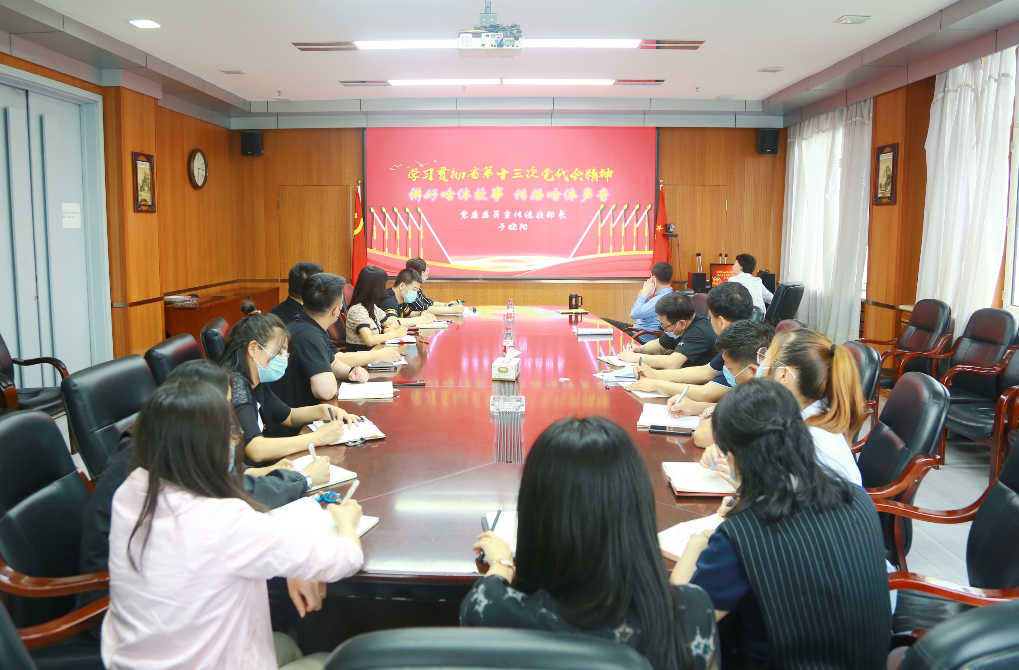 按照学校党委和机关党总支关于学习贯彻省第十三次党代会精神的工作部署,6月15日下午两点整,机关第一党支部在尚德楼九楼会议室开展了“学习贯彻省第十三次党代会精神”党课宣讲活动,党委委员、工会主席赵俊岭同志以普通党员身份参加活动。