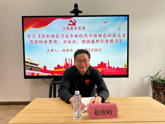 为贯彻落实党的二十大精神,扎实开展学习贯彻习近平新时代中国特色社会主义思想主题教育,5月26日,校党委委员、工会主席赵峻岭以《深刻领会习近平新时代中国特色社会主义思想的世界观、方法论,增强履职尽责能力》为题讲授主题教育专题党课。民族传统体育学院全体党员教师及学生党员参加学习,学院党总支书记吕吉勇主持专题党课。