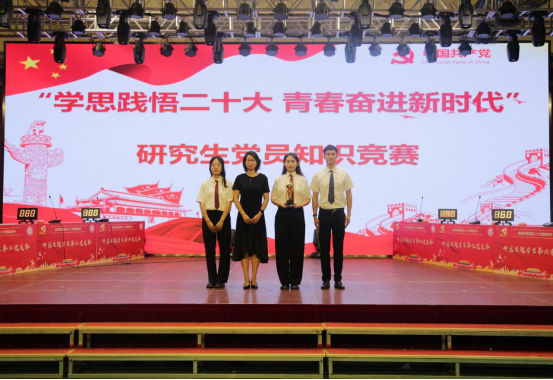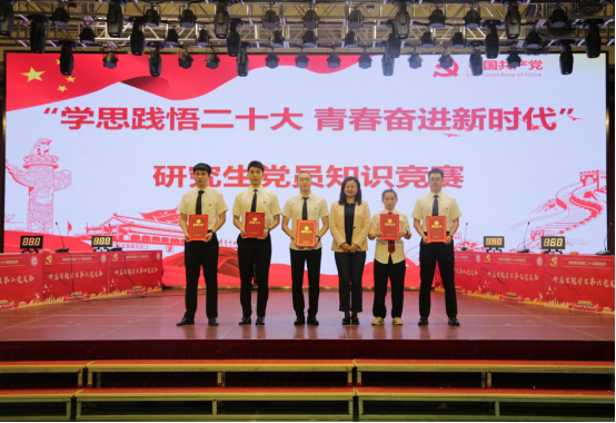 经过层层选拔,研究生院学生党支部8支代表队进入决赛,赛场上各代表队展开了激烈较量,比赛过程精彩纷呈,气氛热烈。经过激烈角逐,最终学生第五党支部获得比赛一等奖;第一党支部获得二等奖;第七党支部获得三等奖。学生第二、三、四、六、八党支部获得优秀奖。