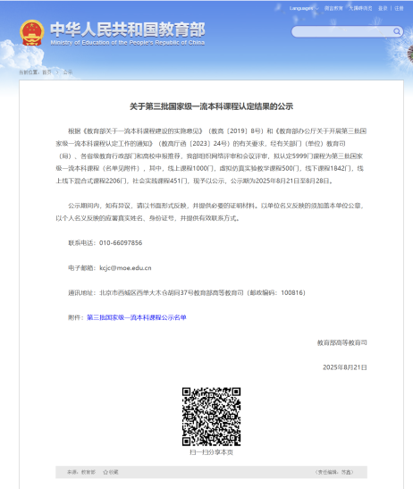 8月21日,教育部公示第三批国家级一流本科课程名单,我省共认定189门,其中,线上课程48门,虚拟仿真实验教学课程7门,线下课程47门,线上线下混合式课程79门,社会实践课程8门。新葡萄刘宇飞教授团队主讲的《运动康复技术》课程成功入选社会实践赛道国家级一流本科课程。