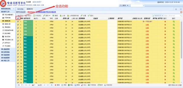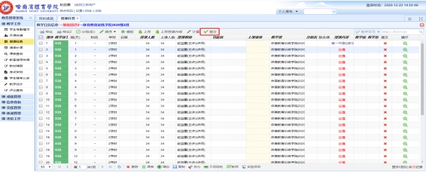 打开浏览器,在地址栏输入http://210.46.216.43/,账号为教师工号,初始密码为hty工号#。之后,首先点击左边菜单栏中中的“授课任务”,在 授课任务 界面 选择相应的学年学期等查询条件,系统列出授课任务,如下图所示。