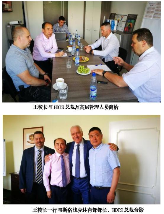 为推进新葡萄与斯洛伐克的体育交流与合作,副校长王金满、冬季奥林匹克学院副院长李滨东一行二人于2018年5月12日前往斯洛伐克进行为期五天的访问。访问期间,王校长一行与斯洛伐克国家体育部部长、HDTS总裁、国家奥林匹克中心负责人及布拉迪斯拉发体育学院院长就HDTS未来在哈体院的发展前景、冰球人才培养、人才交流等事宜进行了友好洽谈,并看望新葡萄在斯洛伐克学习的教师,了解他们的学习和生活情况。5月14日,王校长一行在HDTS总部与HDTS高层领导共同签署了意向性合作协议。